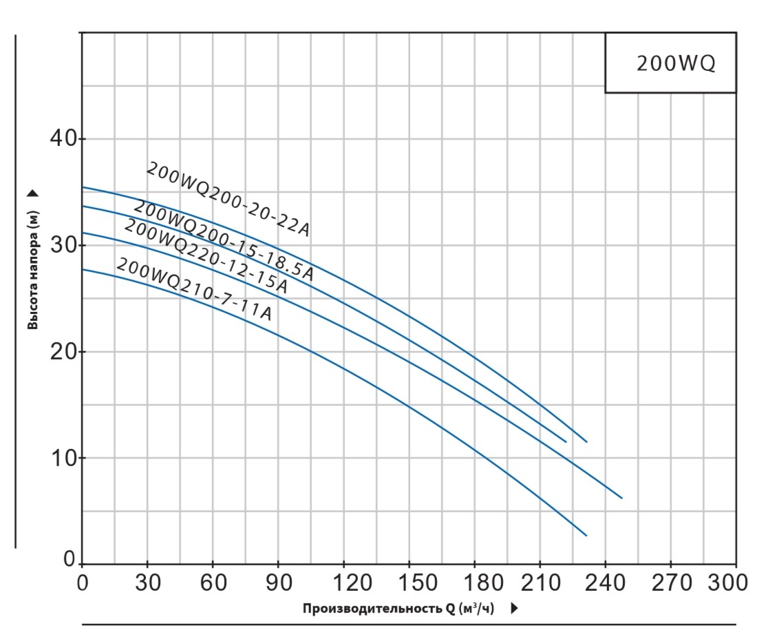 Мощность насоса Purity 200WQ220-12-15A составляет 15 кВт, а напряжение - 380В. Насос обеспечивает высоту напора 12 м, производительность 220 м³/ч.