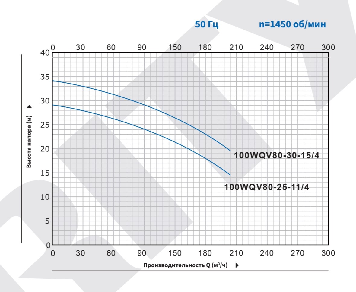 Мощность насоса Purity 100WQV80-25-11/4 составляет 11 кВт, а напряжение - 380В. Насос обеспечивает напор 25 м, производительность 80 м³/ч.