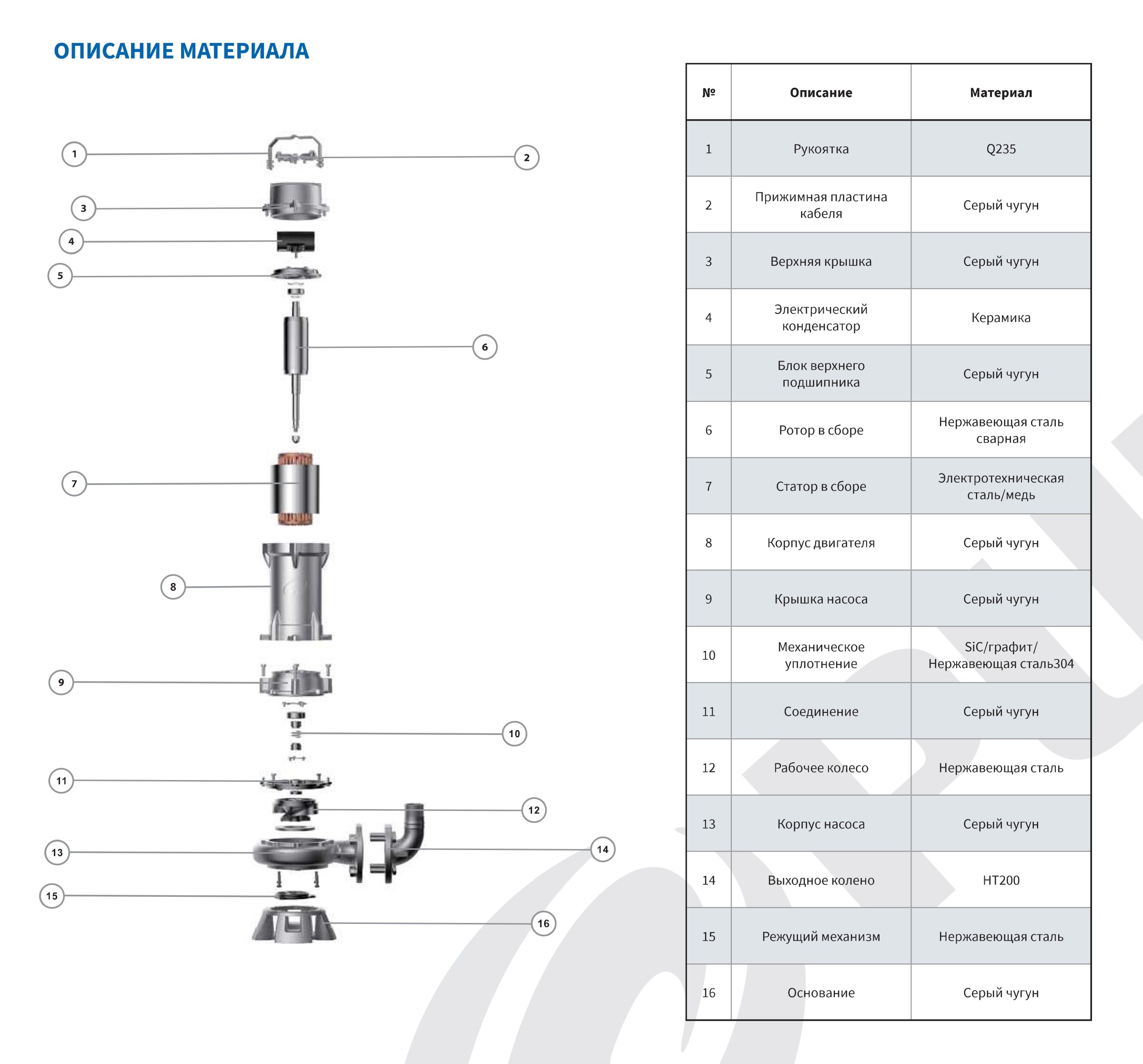 Погружной канализационный насос с режущим механизмом Purity 200WQV250-11-15/2