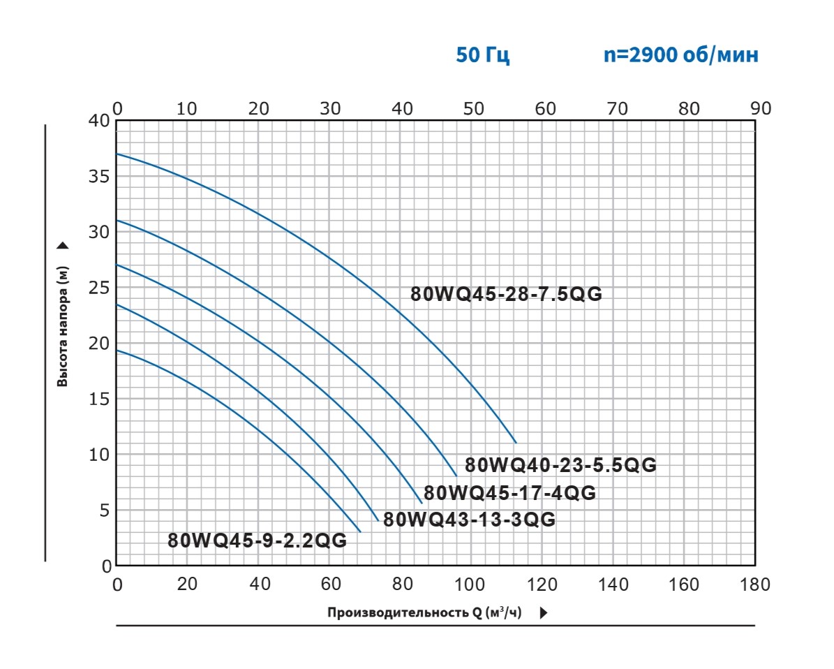 Мощность насоса Purity 80WQ45-9-2.2QG составляет 2.2 кВт, а напряжение - 380В. Насос обеспечивает напор 9 м, производительность 45 м³/ч.