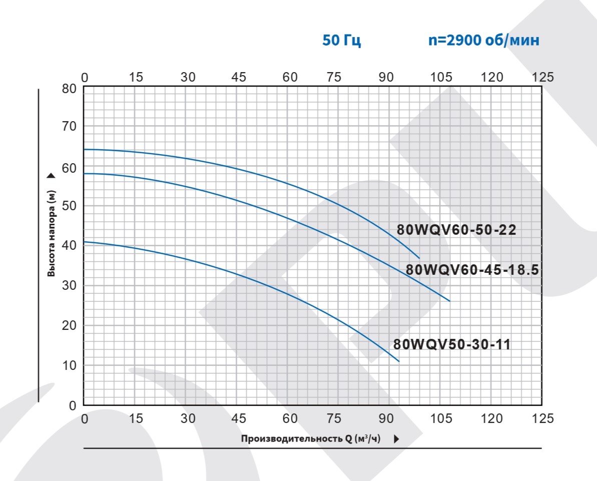 Мощность насоса Purity 80WQV60-45-18.5/2 составляет 18.5 кВт, а напряжение - 380В. Насос обеспечивает напор 45 м, производительность 60 м³/ч.