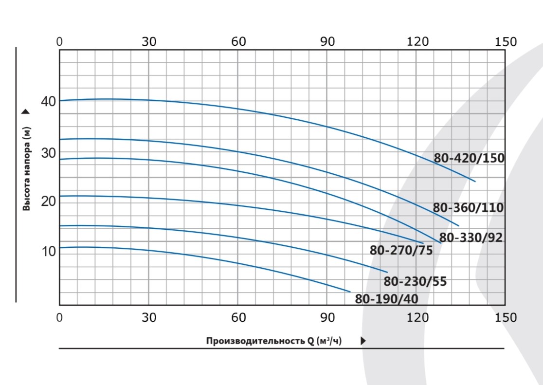 Мощность насоса Purity PT 80-330/92 (N) составляет 9.2 кВт, а напряжение - 380В. Насос обеспечивает напор от 21.5 до 31.5 м, производительность — от 54 до 120 м³/ч.