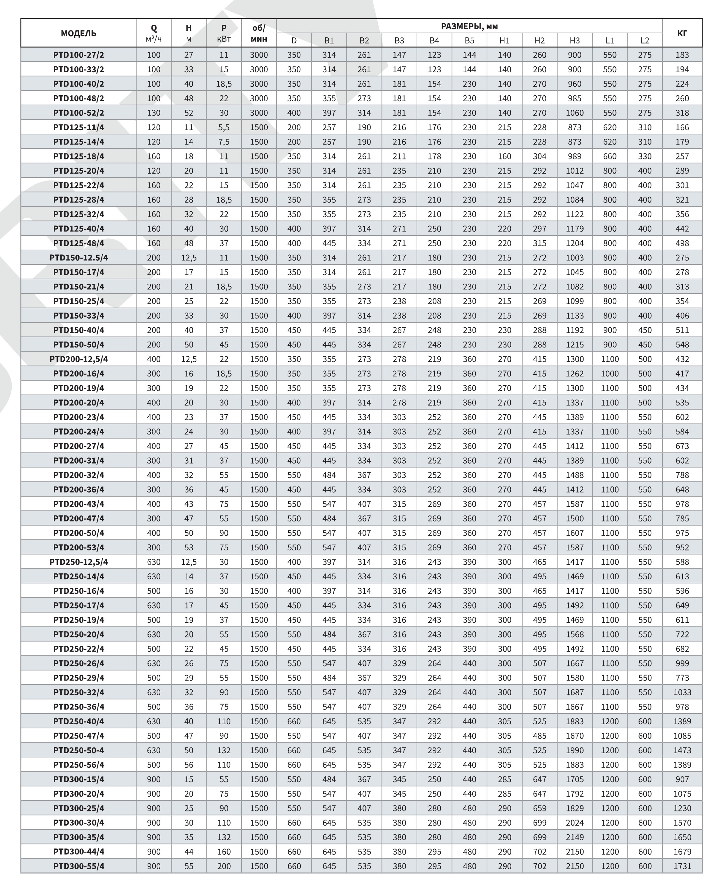 Мощность насоса Purity PTD200-36/4 (N) составляет 45 кВт, а напряжение - 380В. Насос обеспечивает напор 36 м, производительность 300 м³/ч.